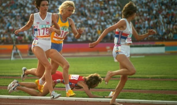 1984 Olympics - Zola Bud ran barefoot in the 800m and tripped American Mary Decker 🤦♂️